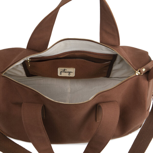 A Mala de viagem Joana marrom é feita para quem acredita que cada destino merece ser vivido com charme, propósito e elegância natural. Produzida em lona 100% algodão de alta qualidade, com acabamento peletizado e toque suave, ela une resistência e sofisticação em perfeita harmonia. Ideal para acompanhar você em todas as aventuras — seja um fim de semana perto de casa ou um embarque para longe do comum.