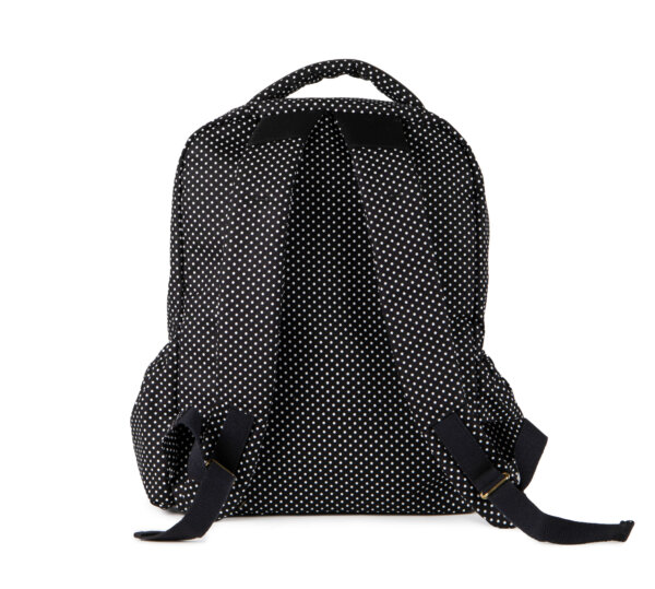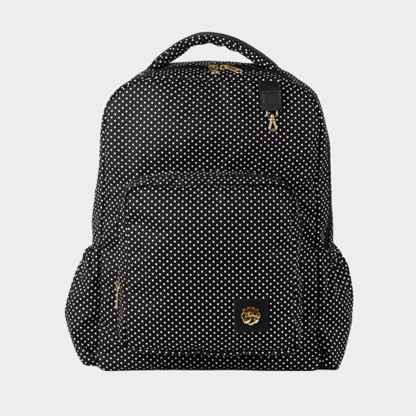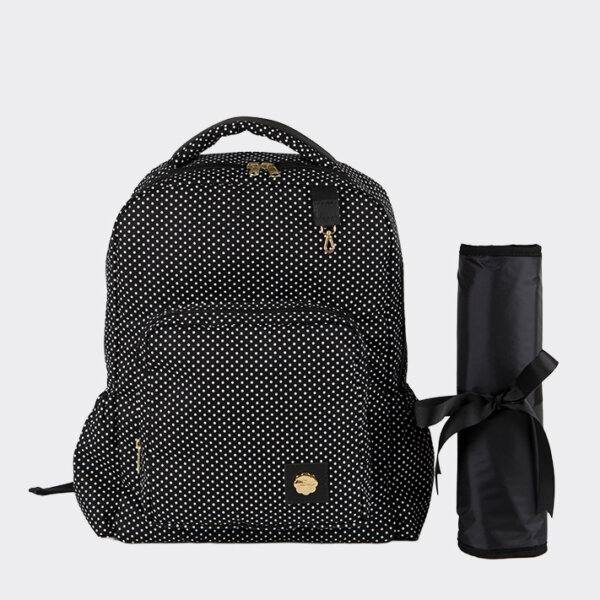 Mochila Maternidade Helena Poá Preta – elegância e praticidade que encantam