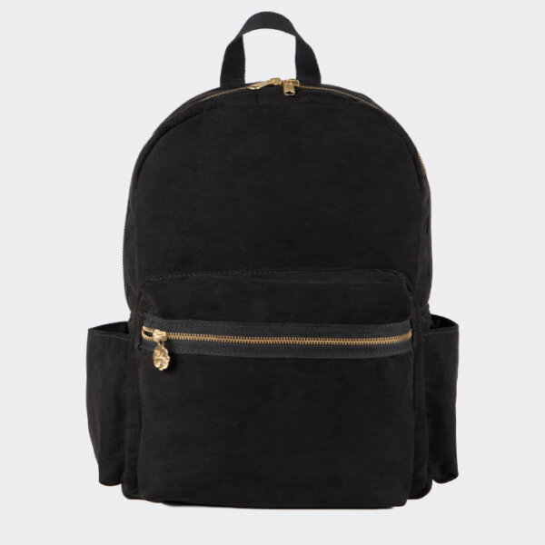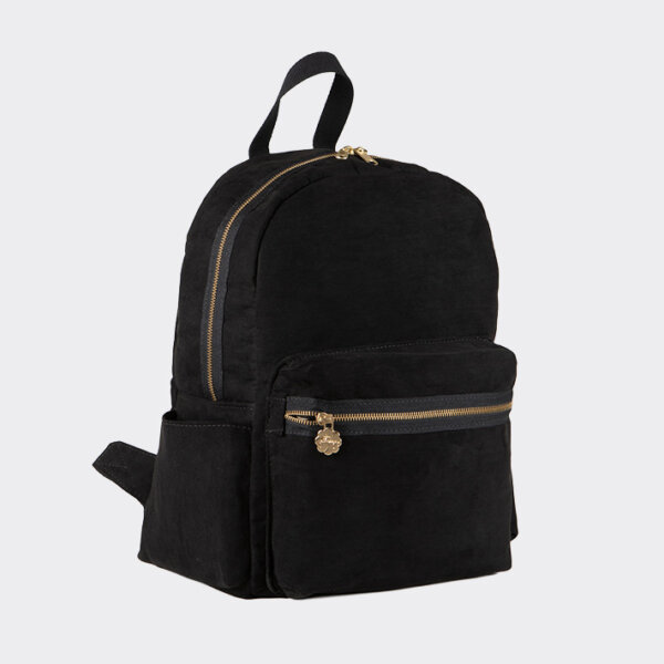 Produzida em Suede 100% poliéster, a mochila apresenta toque macio e acabamento refinado. Além disso, o forro em lonita 100% poliéster oferece resistência e durabilidade, tornando cada uso mais seguro. O zíper em metal dourado facilita o fechamento com estilo, enquanto os cadarços 100% algodão completam o visual com delicadeza e firmeza.
