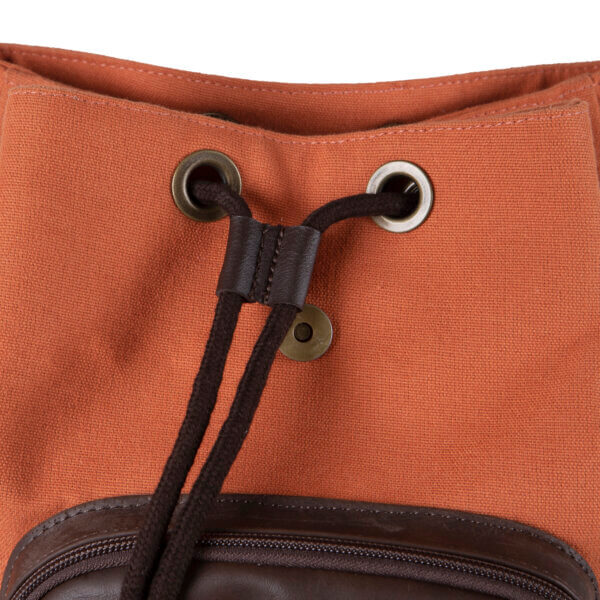 Os detalhes em couro sintético, presentes nas alças e no bolso frontal, adicionam um toque moderno e elegante. As alças com regulagem permitem ajustar o comprimento conforme o estilo de uso. Além disso, o fechamento com cordão 100% algodão e botão ímã oferece segurança e praticidade no dia a dia.